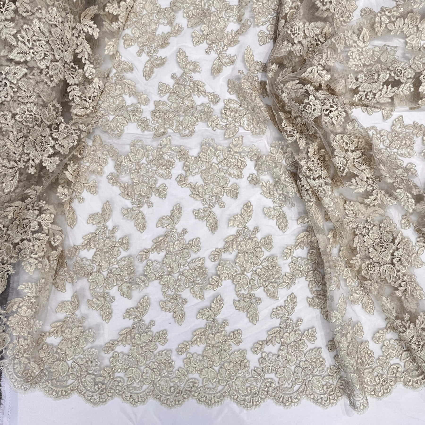 Introducing Corded Bridal Lace Fabric Embroidered on 100% Polyester Net Mesh from Lace USA. Our high-quality fabric is perfect for creating beautiful wedding dresses, evening gowns, dance costumes, and more. This product comes in 17 elegant colors to choose from, ensuring you find just the right color for your unique vision. Our corded lace fabric is the perfect choice when it comes to creating couture lace, special occasion lace, and elegant Decorative lace. The lightweight net mesh allows the fabric to move easily, making it perfect for bridal lace, evening dress lace, quinceanera dress lace, dance costumes lace, and more. Our corded embroidered lace fabric features intricate details that elevate these pieces and make them stand out. For all your special occasions, look no further than Lace USA’s Corded Bridal Lace Fabric Embroidered on 100% Polyester Net Mesh. Our fabric is perfect for creating unique and stunning pieces that will make you look and feel beautiful. Don’t forget to order your lace by the yard! Approximately 50" Wide / Ships within 24 business hours.