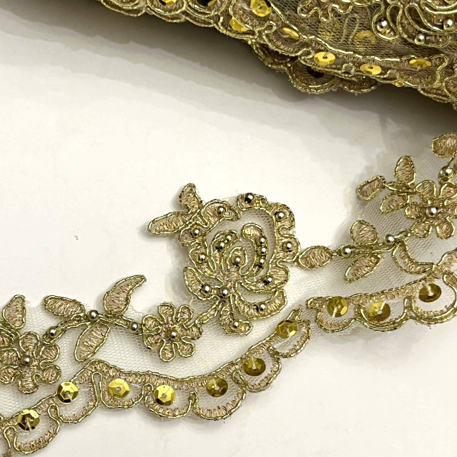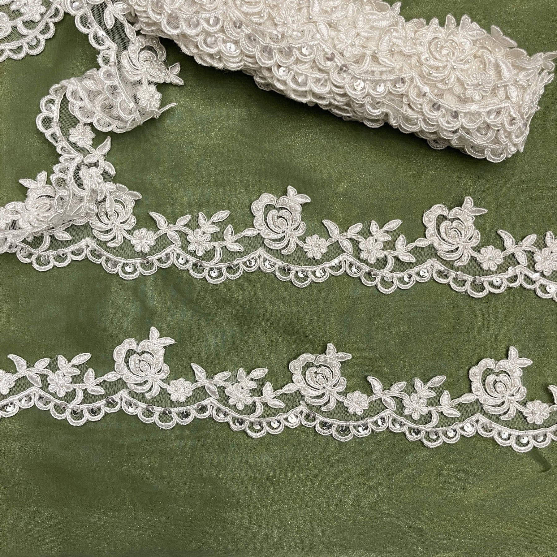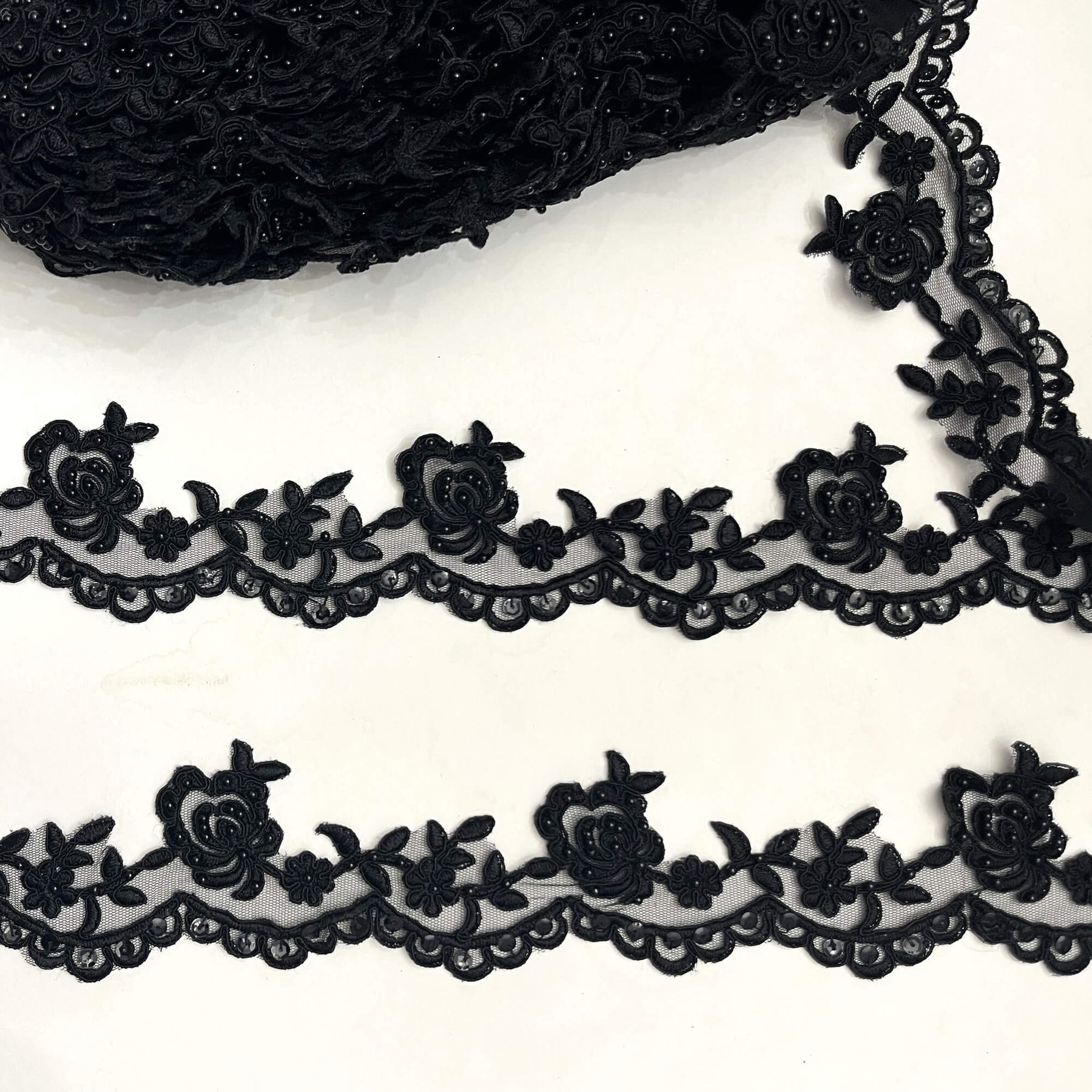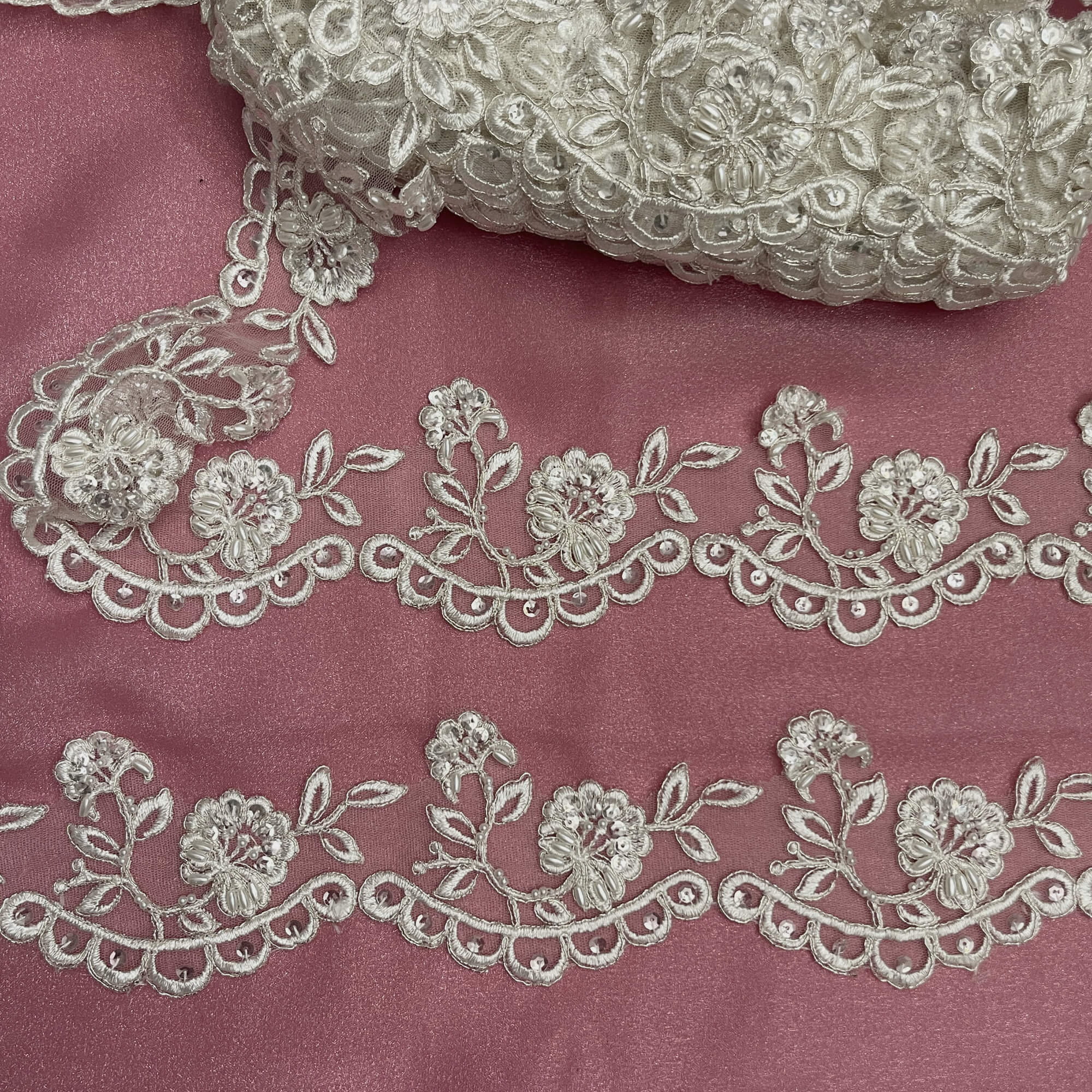 Beaded & Corded Lace Trimming Embroidered on 100% Polyester Net Mesh | Lace USA - 95941W/1-BP