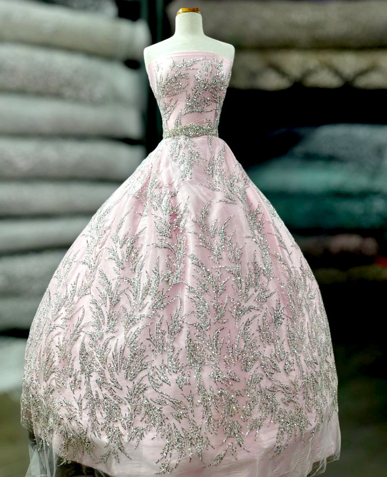 Tela de encaje con cuentas de alta calidad, hecha a mano, bordada en malla de red 100% poliéster. Hermosa en vestidos de novia, vestidos de noche, trajes de baile y más.
