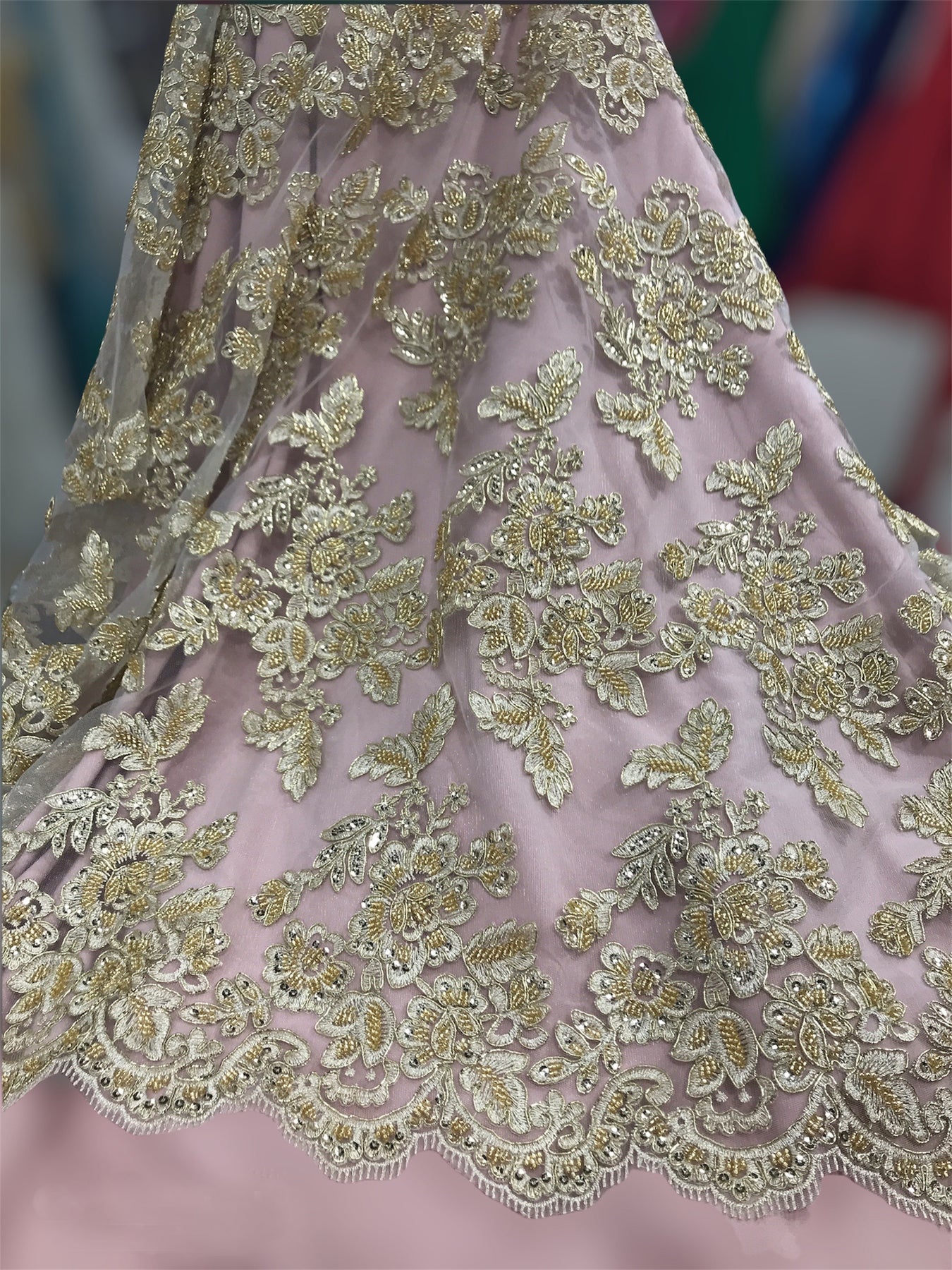 Tela de encaje con cuentas y lentejuelas de alta calidad, hecha a mano, bordada en malla de red 100% poliéster. Hermosa en vestidos de novia, vestidos de noche, trajes de baile y más.