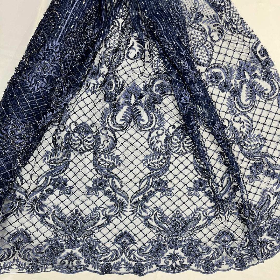 Tela de encaje floral 3D con cuentas bordada en malla de red 100 % poliéster | Encaje EE. UU.