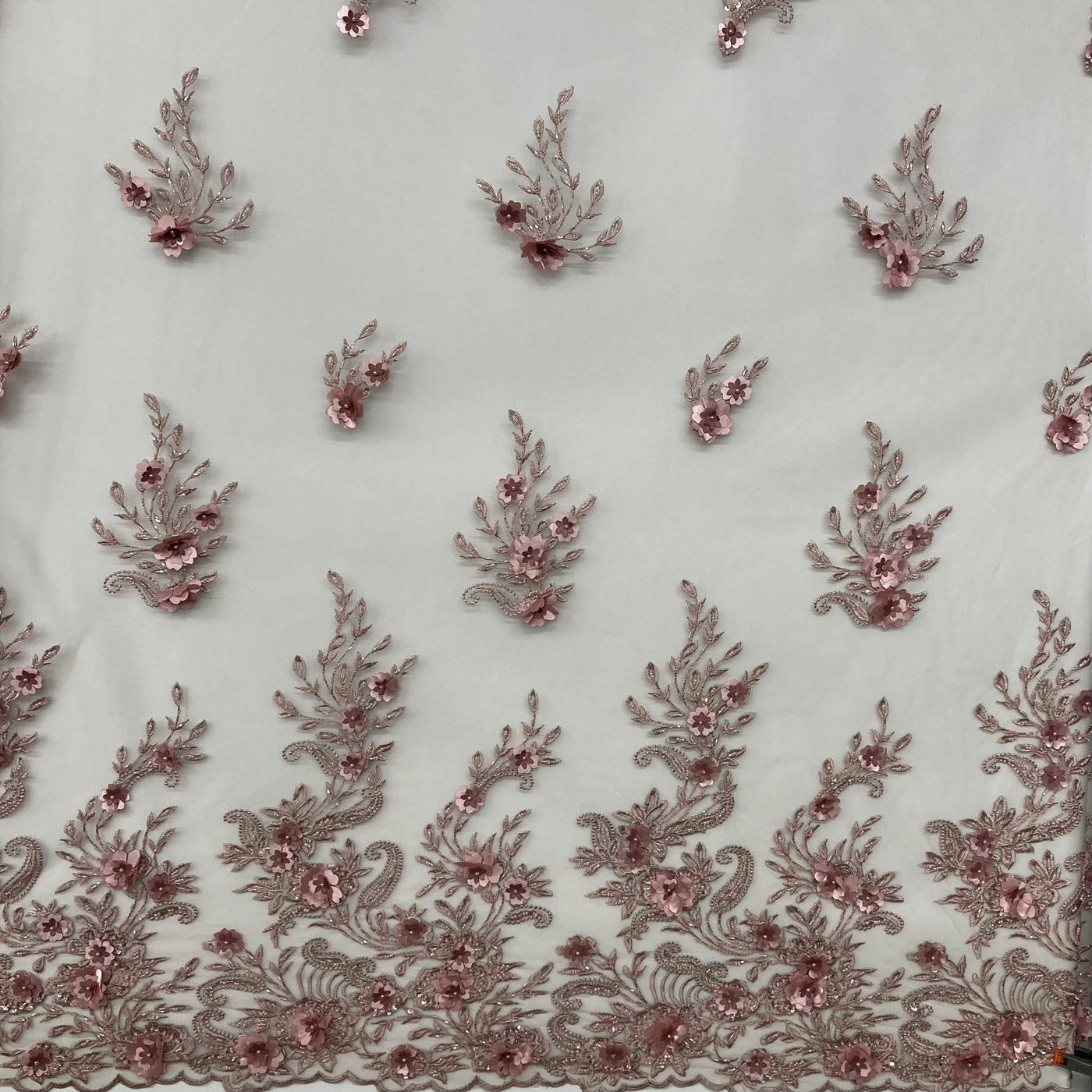 Tela de encaje floral 3D con cuentas de alta calidad hecha a mano bordada en malla de red 100% poliéster. Tejido resistente y pesado. Hermosa en vestidos de novia, vestidos de noche, trajes de baile y más.